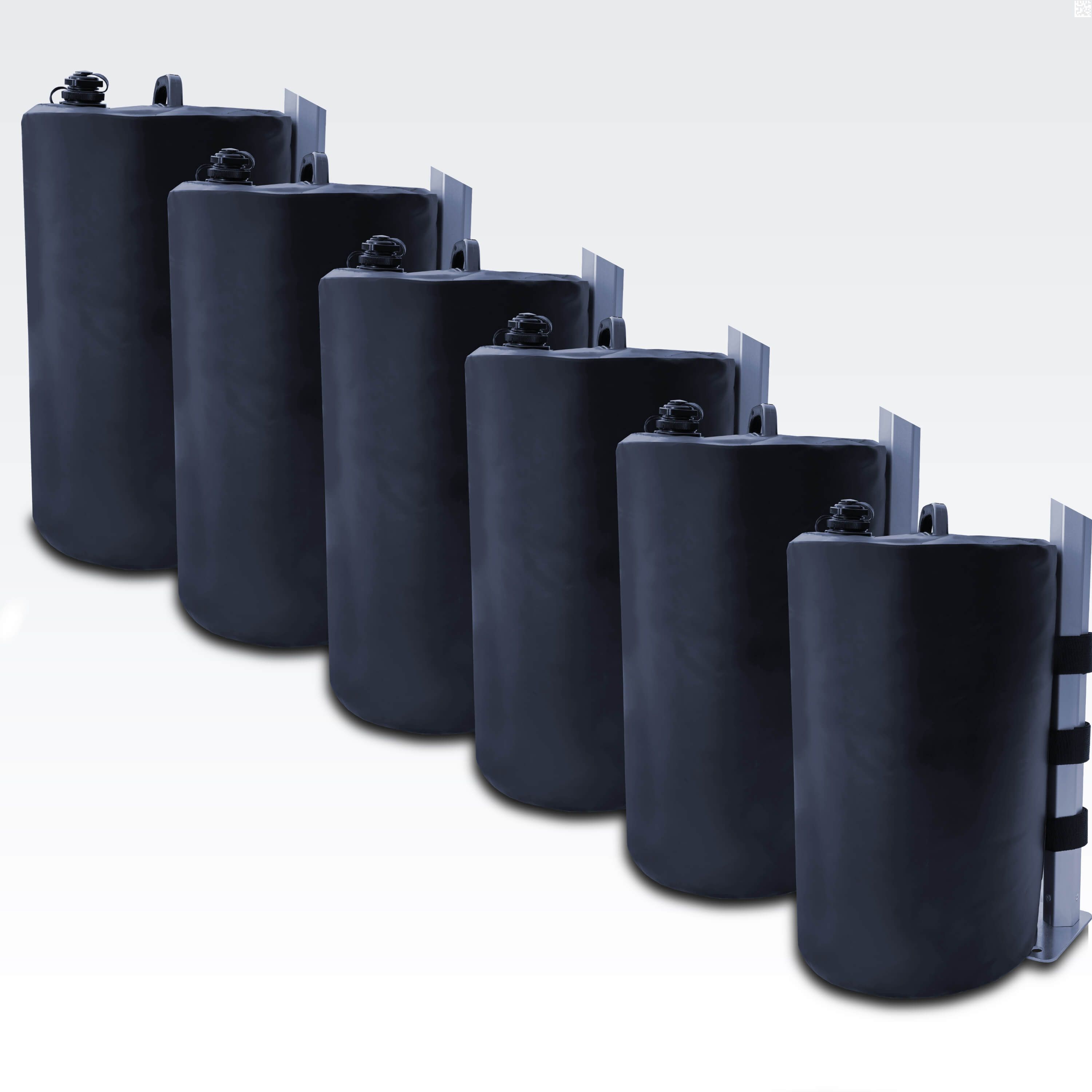 Vodní závaží jsou ideální volbou pro rychlou a efektivní stabilizaci přenosných stanů. Jsou lehká a kompaktní při přepravě, pokud jsou prázdná, a jejich naplnění vodou je rychlé a snadné. Ve srovnání s kovovými nebo betonovými závažími nabízejí vyšší flexibilitu, lepší manipulaci a jednodušší montáž. S vodními závažími se můžete vyhnout náročným a časově náročným instalacím, což šetří čas i energii.